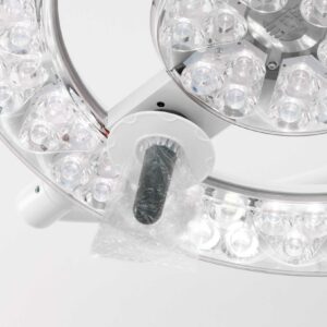 Merivaara’s Q-Flow surgical light has received several design awards. Now the family has grown with two compact lamps: Q-Flow 1 and Q-Flow 2 utilize the technology of the large Q-Flow surgical lights, where excellent tissue color rendition is an essential feature. Merivaara’s Q-Flow 1 examination lamp and the Q-Flow 2 minor surgical lamp are designed for small surgical operations, particularly suitable for smaller operations performed outside main operating rooms. The light heads can be easily connected to arms optimized for different procedures, which improves the ergonomics of the healthcare staff. The new lamps of the Q-Flow product series can be used with one hand: this improves patient safety, as the user can keep the other hand clean for patient treatment. Smooth design of splash proof enclosure ensures efficient cleaning of the product.